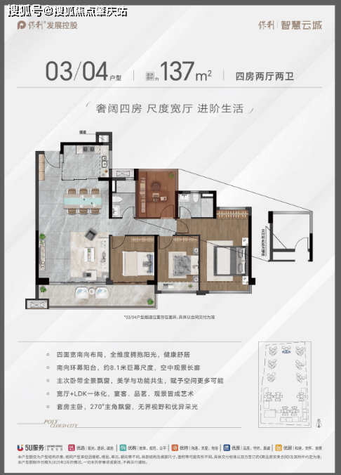 137㎡(峯镜奢阔四房)——8.1m长阳台,LDK一体化超阔通厅,主卧270°落地飘窗;