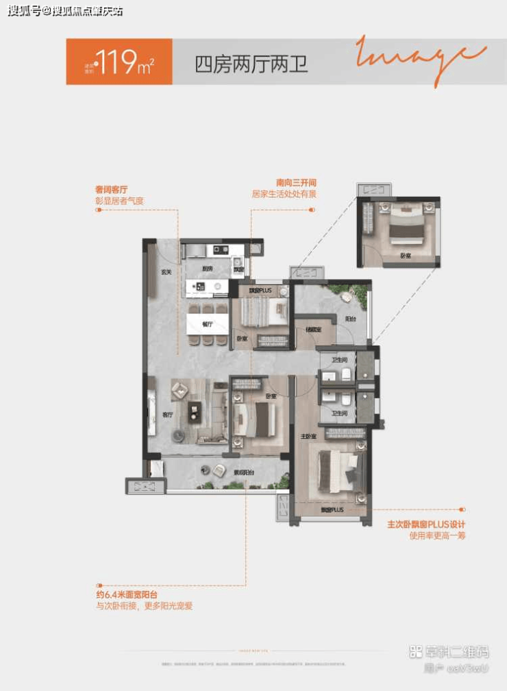• 户户飘窗PLUS:飘窗落地设计,最大程度解放房间尺度
