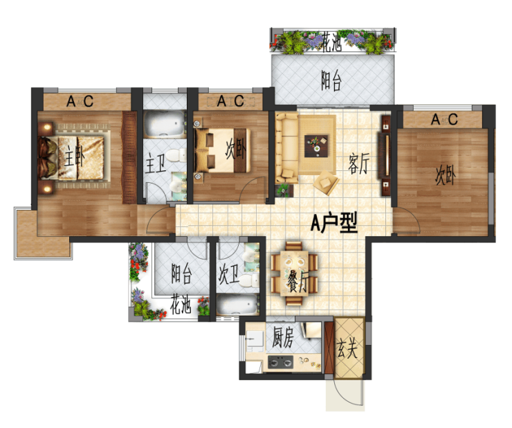 【A户型 】阳光经典四居