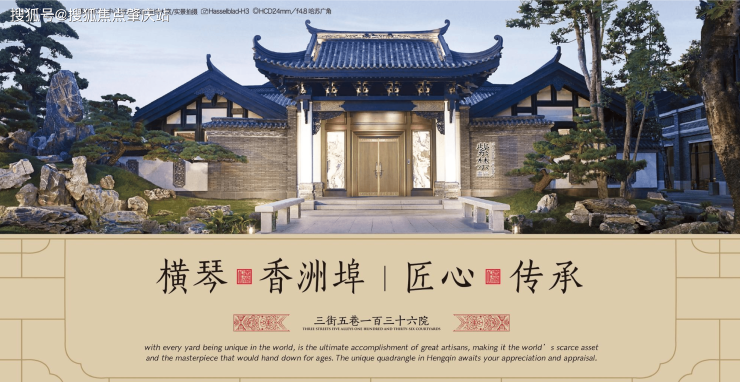 一期四合院融合川、晋、徽、海派、岭南五大建筑流派精髓,采用 “曲阳石雕、东阳木雕、徽晋砖雕、川西灰塑、河北铜雕” 五大非遗工法,由 600 名工匠历时 5 年打造,重现百年前香洲埠的建筑风貌。