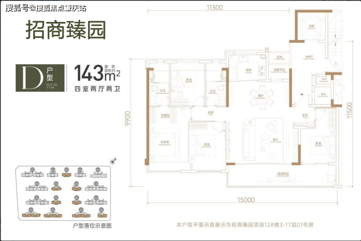 143㎡户型:4 房 2 厅 2 卫