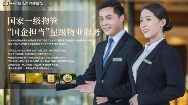 天地源物业具有国家建设部物业管理一级资质,是中国物业管理协会常务理事单位,陕西省、西安市物业管理协会副会长单位。成立十余年来,秉承“亲情、尊重、传承、创造”的服务理念,以专业精诚打造人文物业,提供个性化需求定制服务,为业主营造安全安心的舒心家园。