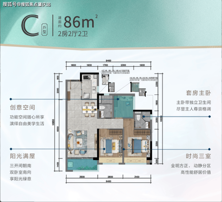 建面约86㎡2+1拓展空间,高性价比实用户型