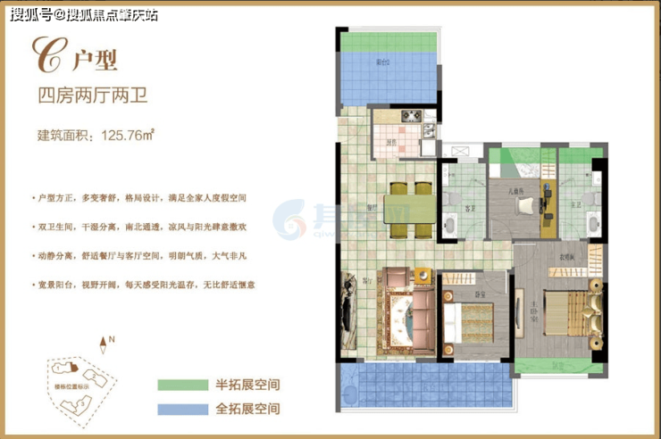 3# 楼在售户型:B 户型 166.46㎡四房两厅三卫。