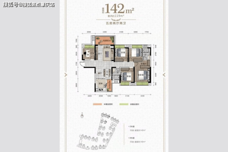 「建面约142㎡五室两厅两卫」