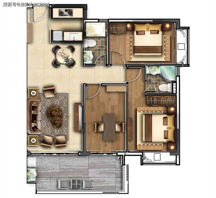 建筑面积100-108㎡ 3房2厅2卫