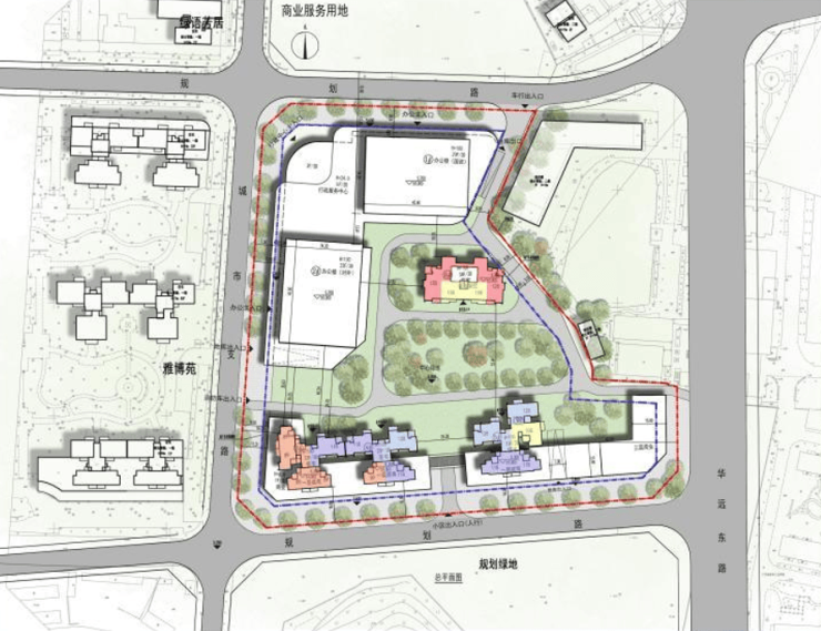 项目整体规划以高层住宅 、国资综合办公商厦及沿街社区商业为主 。项目规划4栋高层精质住宅, 约580户,楼栋设计采用半围合式布局,以运动跑道 、健身设施 、儿童游乐区 、社区泛会所等全龄运动配套为设计亮点,打造江 、屿 、园三位一体的全龄健康生活新交标 。