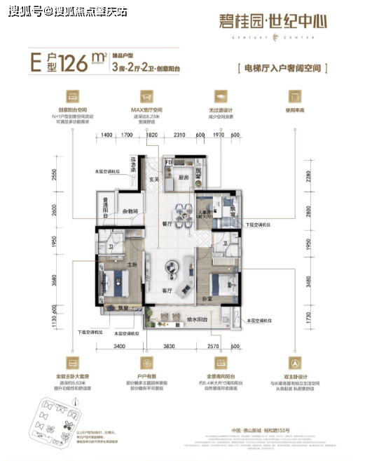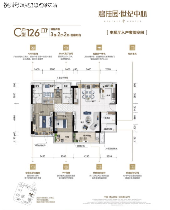 【臻品户型--126㎡ 3房2厅2卫+创意阳台】