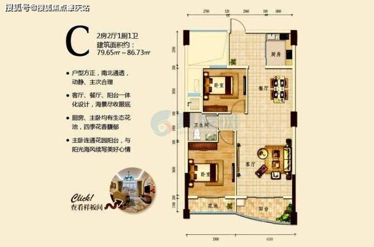 C户型79.65-86.73㎡(建筑面积)两房两厅