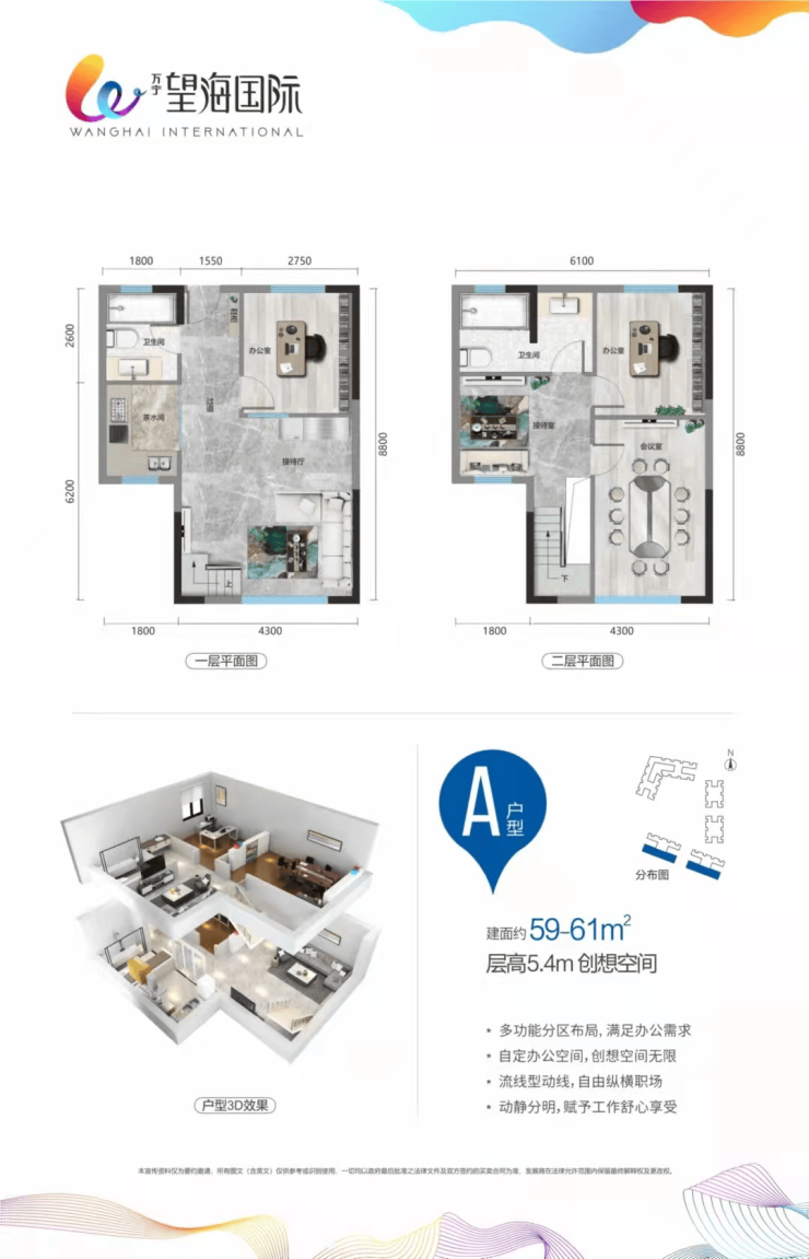 一期:占地面积 21,256.21㎡,建筑面积 61,280.96㎡,规划 5 栋商务 / 商业建筑,1#、2# 栋 10 层,两梯 16 户;3#、4# 栋 11 层,两梯 12 户;5# 栋 11 层,四梯 31 户。
