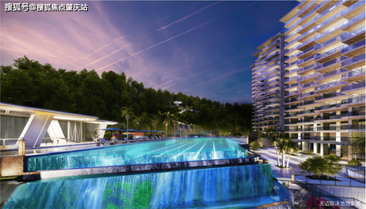 水主题元素贯穿整个园区景观中庭,配合精心设计布置的半山镜面无边际泳池,于畅游中体会山海一色,悠然于心。同时配置儿童嬉戏区、满足成人与孩童的多样化需求,犹如点缀海面上的颗颗晶钻,畅享365天假日生活。