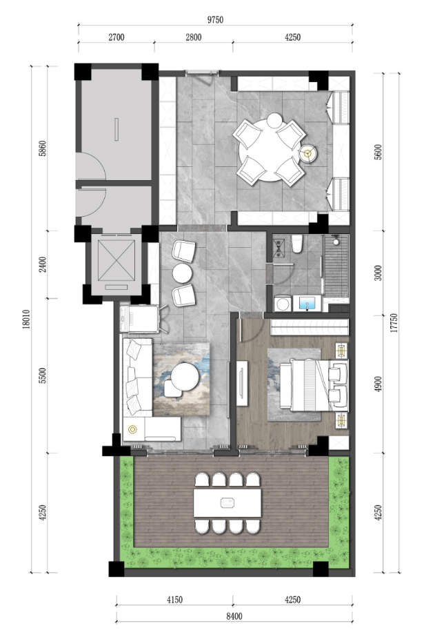 3.下叠:建筑面积约100-110㎡,四房三厅三卫。