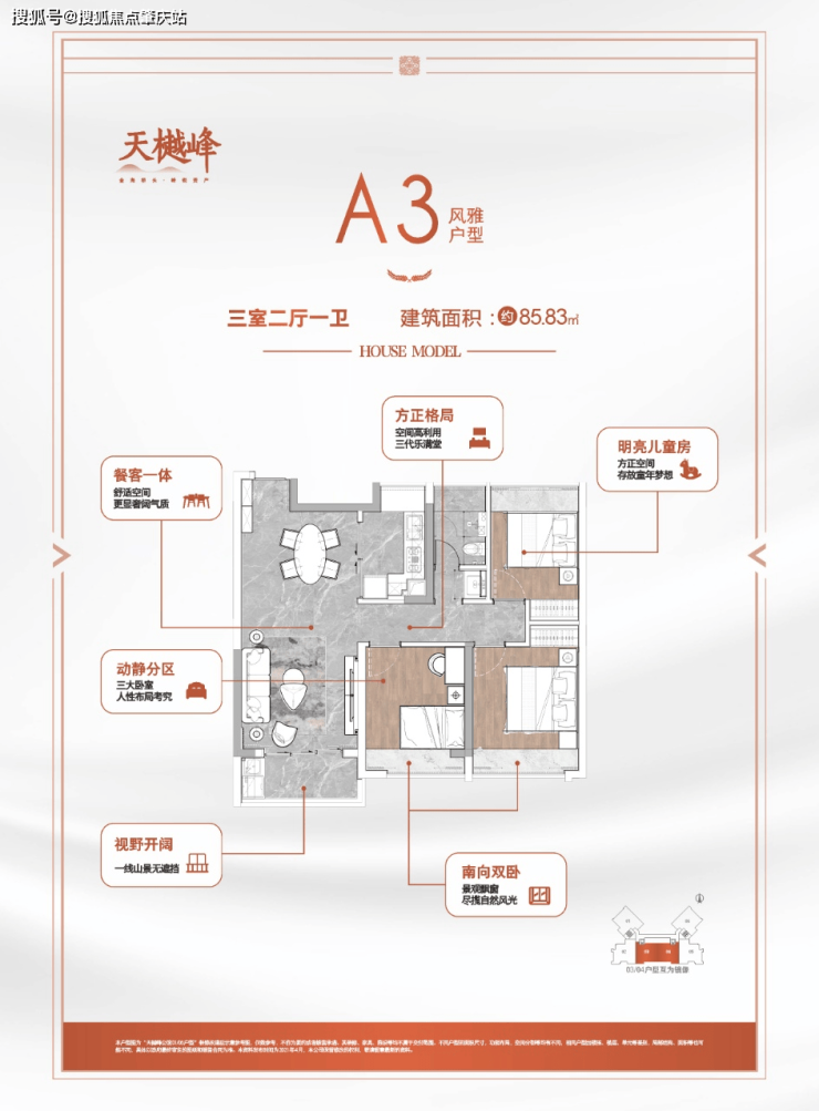 【A3户型 85.83㎡ 南向3房】