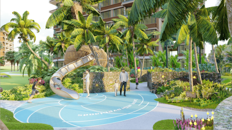 组团内曲折蜿蜒的景观轴线串联起各个组团庭院,整体简洁大气的氛围,舒适自然的花园空间,热带风情的植被设计,营造优雅舒适的海岛热带度假风情,打造高品质人居生活环境。