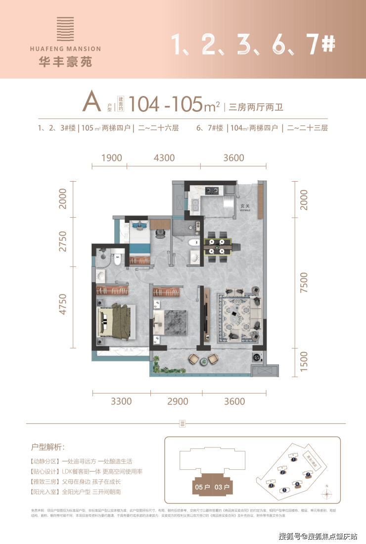 A户型 105㎡ | 三房两厅两卫