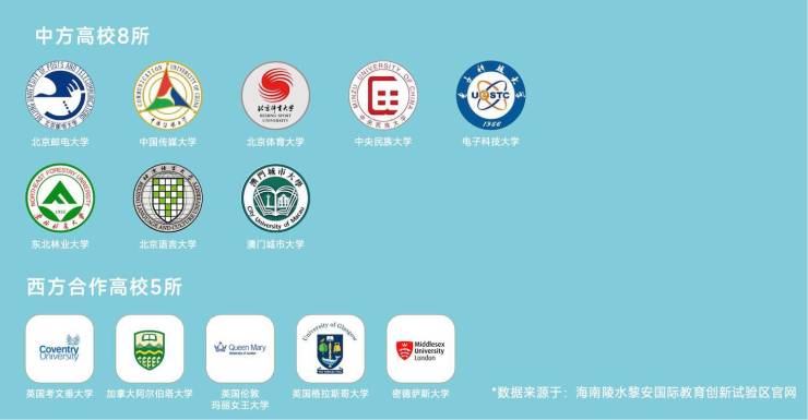 中国人民大学附属中学三亚学校、美国卫斯理安国际学校附属国际高中、杜威国际学校等。