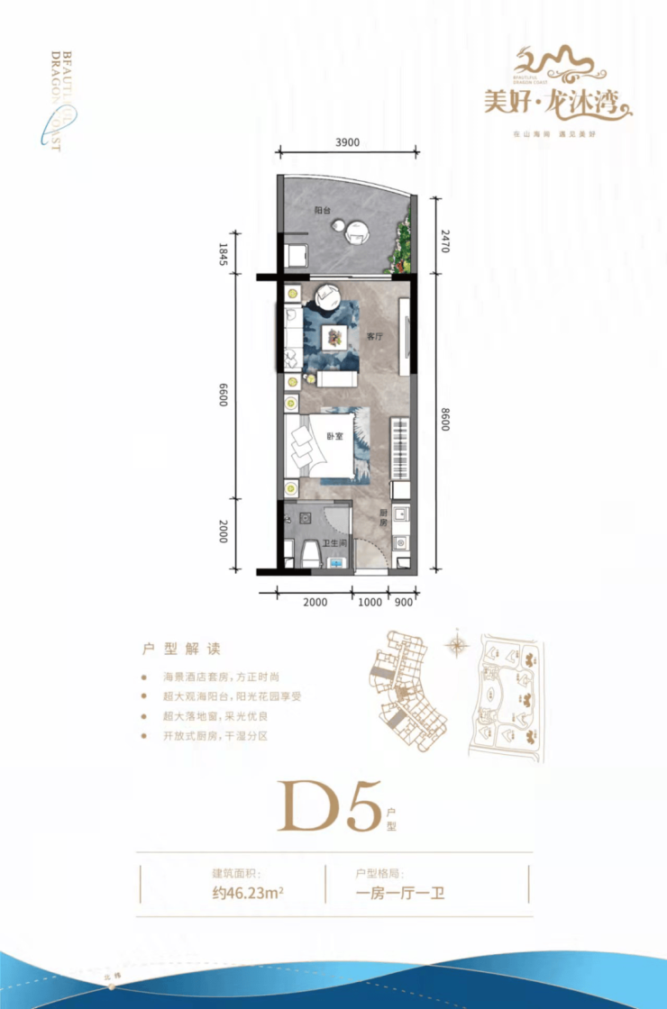 ① 开间户型独立明卫,各功能区域俱全,瞰景阳台,超大景观面宽