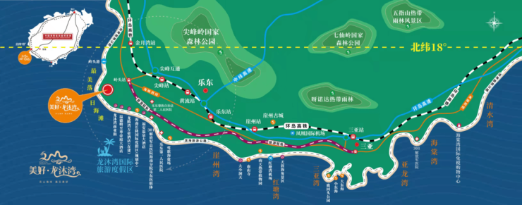 ⑤ 海南旅游轻轨将三亚至龙沐湾连成一片,其中“岭头揽胜”站就在项目门口,目前轻轨已开工建设,预计2022年6月竣工