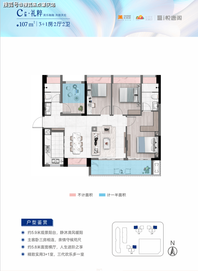 产品面积段:约87-94-107㎡三至四房