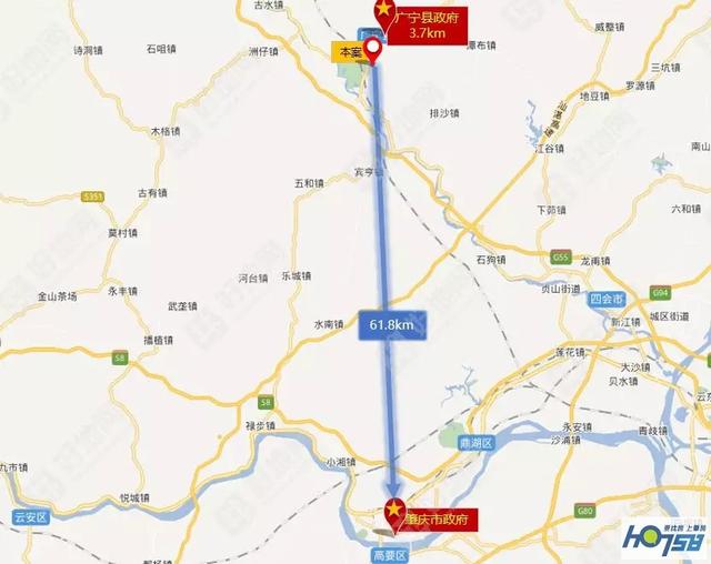 地块西北侧在售楼盘为广宁碧桂园,毛坯与精装高层洋房均有在售,均价约5500元/㎡。