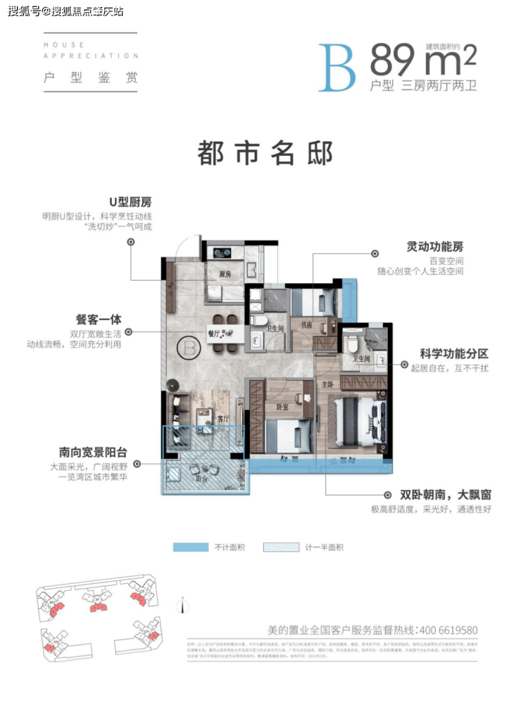 ■ 约83㎡三房两厅一卫 灵动空间设计,广阔观景视野 客餐厅一体化布局,直通大景观阳台 主次卧宽景大飘窗,品质生活悠然自得