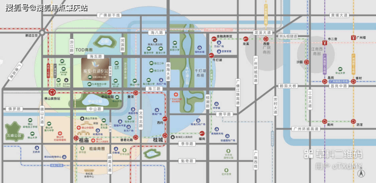 项目位于禅桂核心板块,千灯湖及祖庙双商圈中心,3⃣号线、5⃣号线双地铁交汇,地铁中山公园站旁,高铁佛山站TOD,是集交通、商业、教育、医疗、休闲等配套于一体的舒适纯居社区。