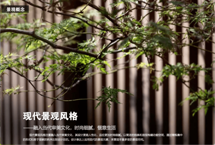 现代景观风格注重融入当代审美文化,其设计更趋人性化,品位更加时尚细腻。