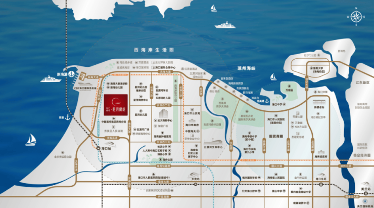 东汇绿城桂语蘭庭位于中国政府全力打造的海南自由贸易港省会海口市西海岸新海港片区。未来,以中国最大的新海港客运枢纽为中心,新海港片区依托自贸港四大支柱产业规划——金融、国际贸易、专业服务、旅游体验(免税购物),连接22公里西海岸线,打造面向世界,年客流量千万级的“自贸港世界级湾区”。