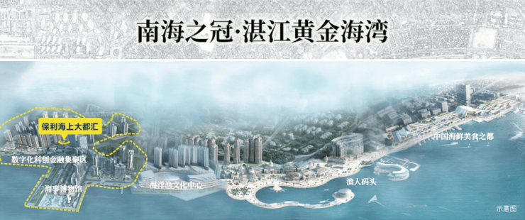 2024年3月13日,湛江霞山政府拟规划将保利海上大都汇项目至海滨公园以南一带海岸线打造为“南海之冠·湛江黄金海湾”,项目的原滨及东广场商墅区域有望打造成【数字化科创金融聚集区】,目前已与腾讯、百度、华为等企业达成初步合作意向。在未来,区域的发展潜力将会得到充分展现。