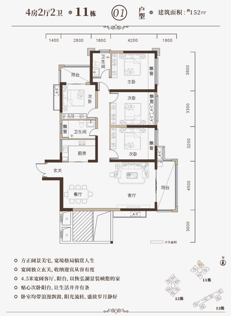 四期全新约104m²——152m²精装户型,更通透、空间布局更合理、居住更舒适。全面采用升级“5U”精装修居家理念,运用人体工程学实用舒适设计,严选高品质环保建材和世界知名品牌家居,如西门子、汉斯格雅、德国唯宝、西蒙、罗马利奥瓷砖、博洛尼、立邦等。严格设置质量保障体系,让家的温馨弥漫每一寸生活空间。