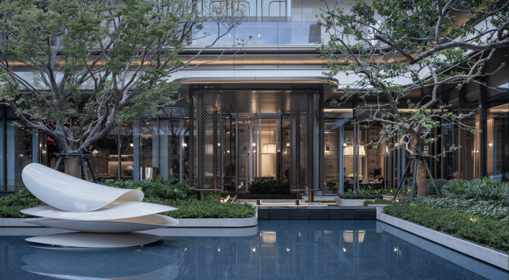 国际化大师景观团队倾力构筑,以“玉”为引,融入“繁花”,更有百年古树点缀,结合海南在地文化,以「六幕十二境」营造奢雅尊崇的礼序归家体验。
