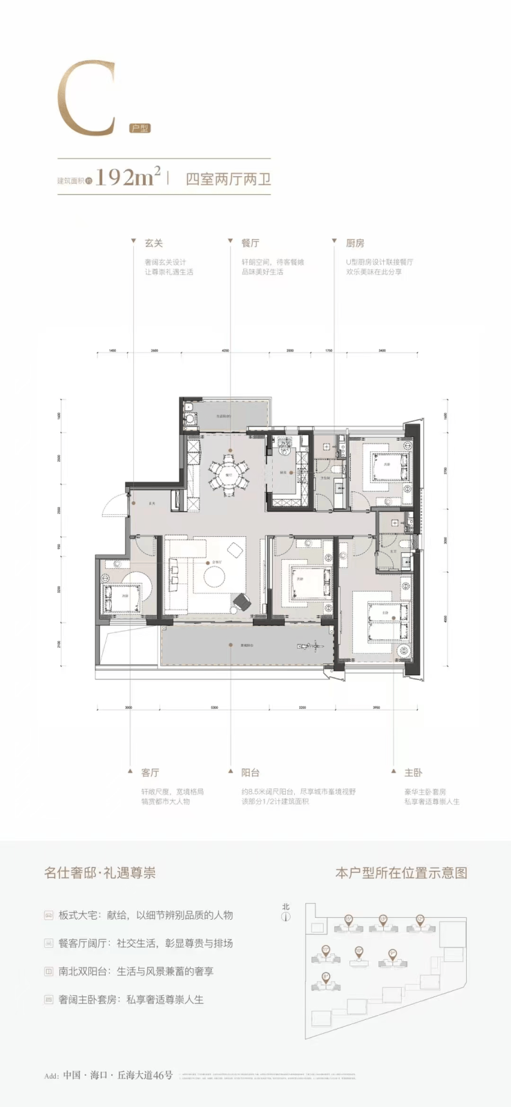 「繁华商圈」国贸、世贸、椰海三大商圈环绕,万达广场、友谊南海城、龙湖天街在旁