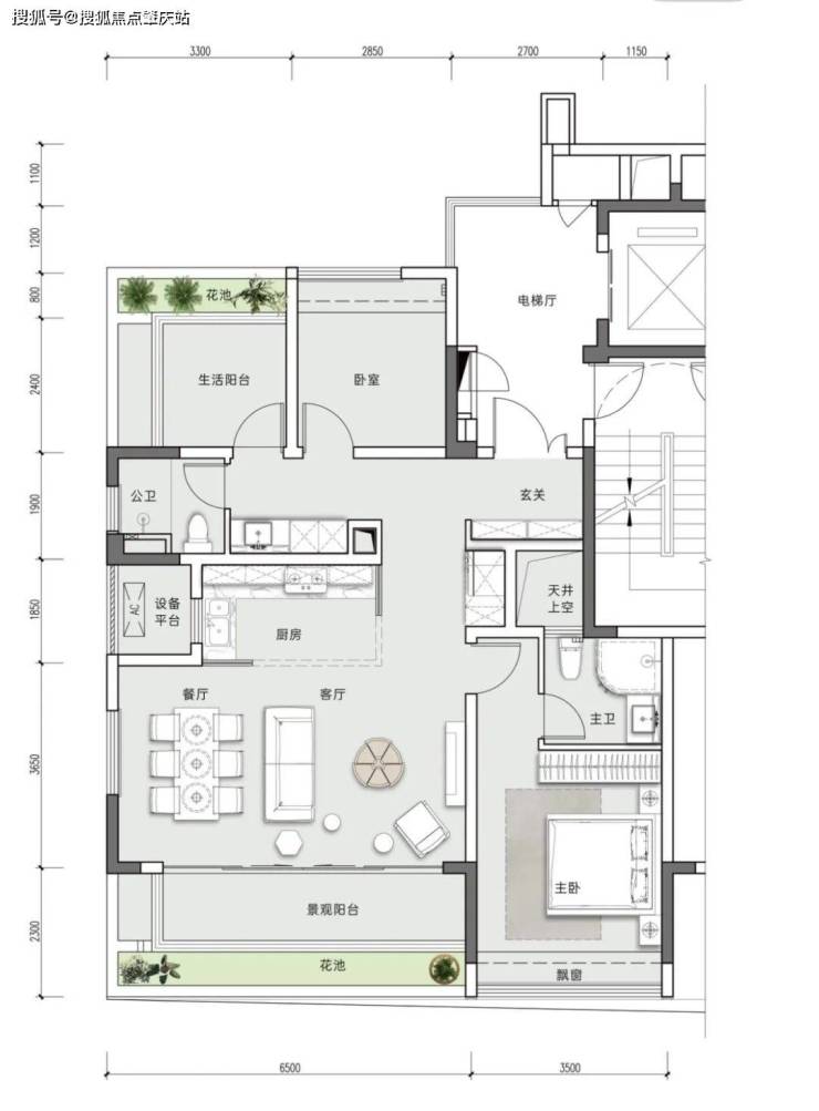 高得房率:私家电梯厅私密独享,户内超高赠送,户户近 100% 得房率,让您花同样的钱,享受更大的居住空间。每一寸空间都经过精心设计,充分利用,让您的居住体验更加舒适。