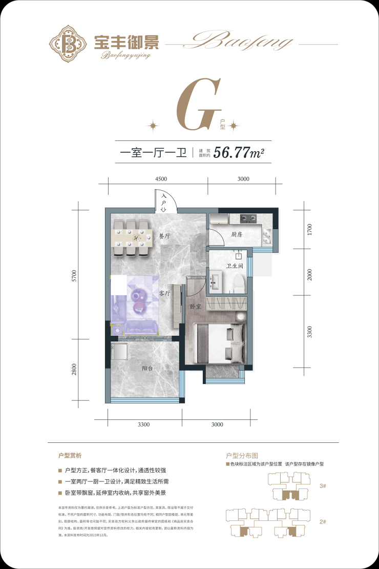 『G户型鉴赏 』 一房二厅一卫一阳台