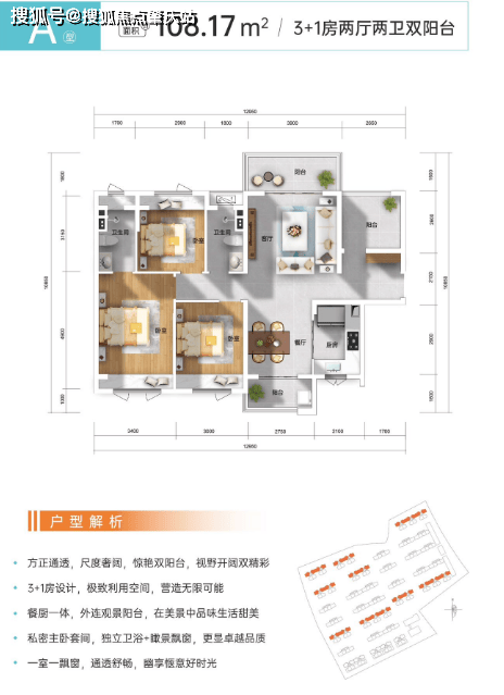 主力户型为 108㎡的 3+1 房(可改四房)和 118㎡的四房,采用南北通透设计,配备双阳台、主卧套房及 U 型厨房,空间利用率高。园区规划三级景观带(入口花园、全龄活动花园、宅间花园)和两轴景观区(泳池水景、儿童活动广场),并设有太空主题乐园、夜光跑道、星光影院等 10 余个休闲配套。