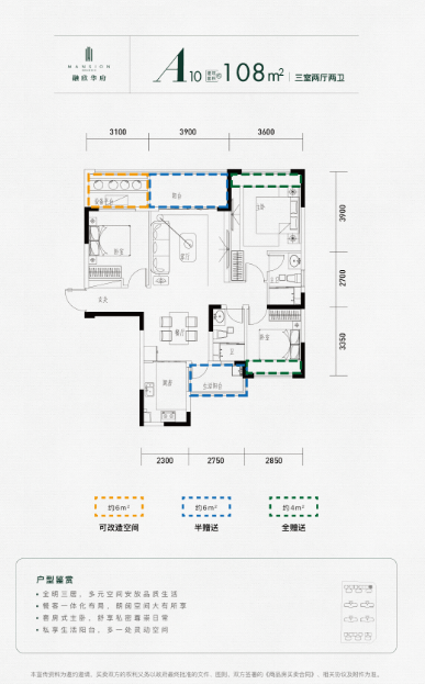 A9/A10建面约108㎡三室两厅两卫