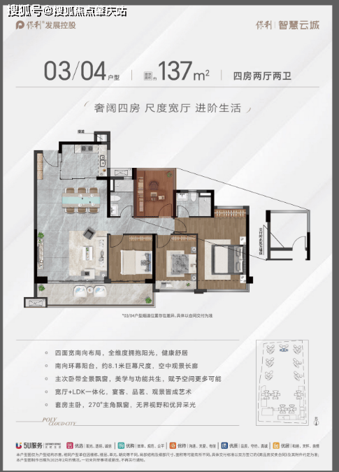 137㎡(峯镜奢阔四房)——8.1m长阳台,LDK一体化超阔通厅,主卧270°落地飘窗;