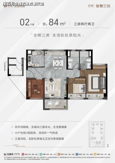 84㎡(实用型三房)—— 三房两卫,南北对流!