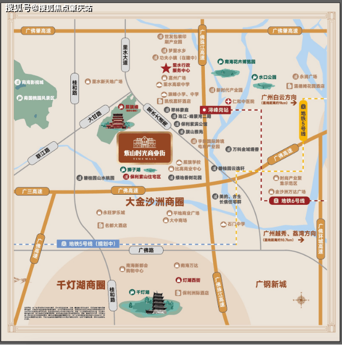 里水大道中轴线,紧邻大金沙洲和千灯湖商圈,毗邻广佛高速及佛山一环,10分钟桂城,15分钟禅城,东往30分钟广州珠江新城,承接广佛庞大的稳定消费客群。