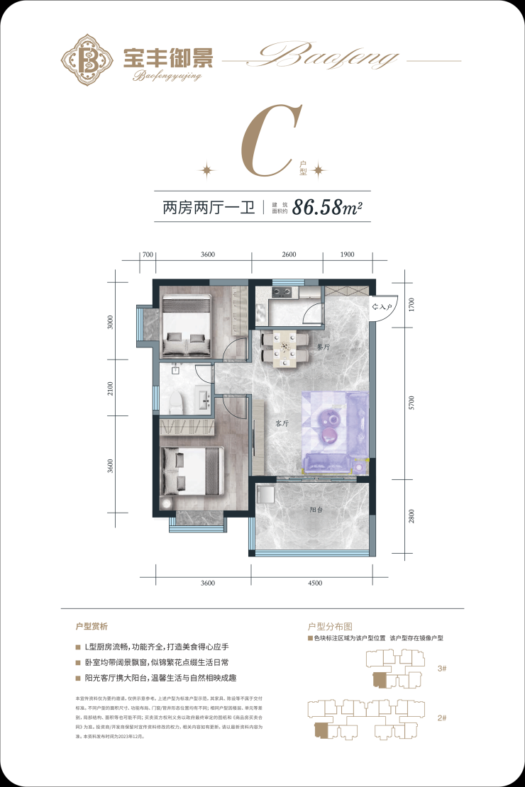 『C户型鉴赏 』 二房二厅一卫一阳台