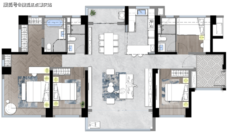 双套间设计,长幼分区,270°环幕式观江主卧