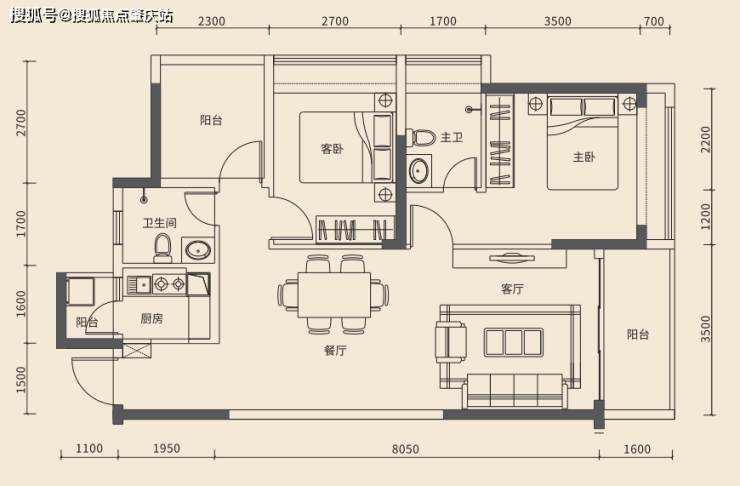 2、建面约85㎡(3房2厅2卫)