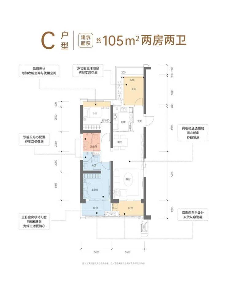C户型 二房二厅两卫两阳台