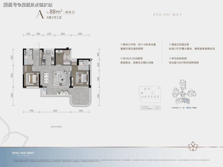 ▪产品|约88-142㎡高层阔景;约240㎡270度环幕山海景观、9米挑高空中墅院