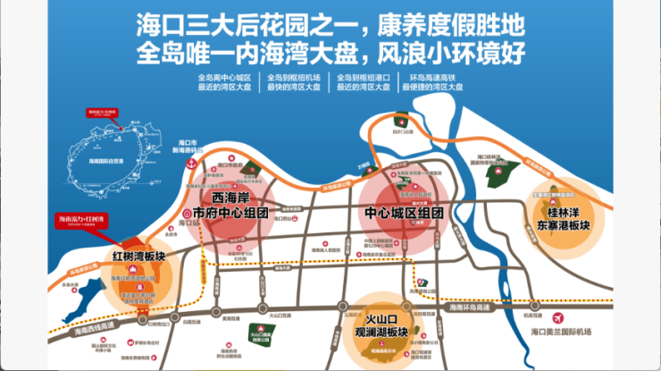 1、环岛高铁、环岛高速、环岛旅游公路,三线合“璧”,贯穿红树湾,海口西门户首站,全海南最便捷!
