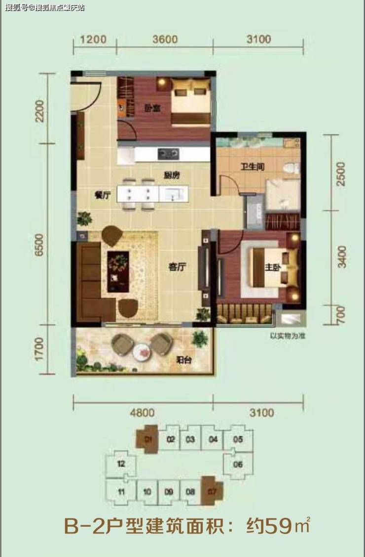 ⭐B-2户型建筑面积:约59㎡