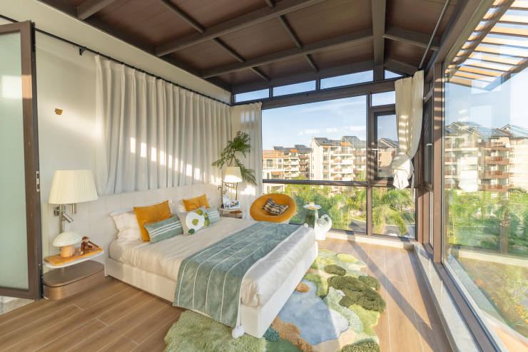 3、阳光卧室:配置落地明窗,连接庭院,美景自然延入