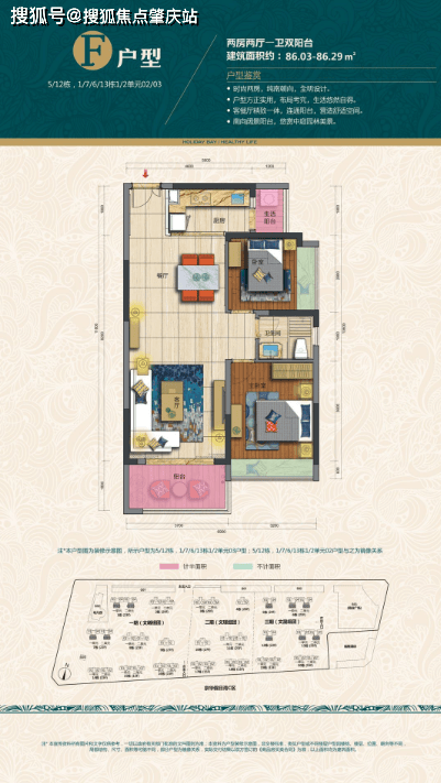 🏡 86㎡ 两房两厅一卫【5、6、12栋】