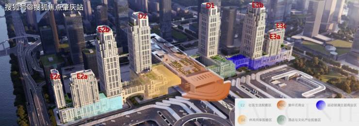 ✅旅检大楼集中式商业区、D1酒店与文化产业配套区、D2休闲共享配套区、E2社区生活配套区以及E3运动健康主题商业区