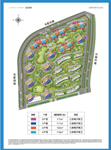 建筑面积约110-122㎡三房两厅两卫,通透板楼,奢尺景观大阳台,方正格局,空间实用;主卧套房,全明厨卫,舒享惬意生活。